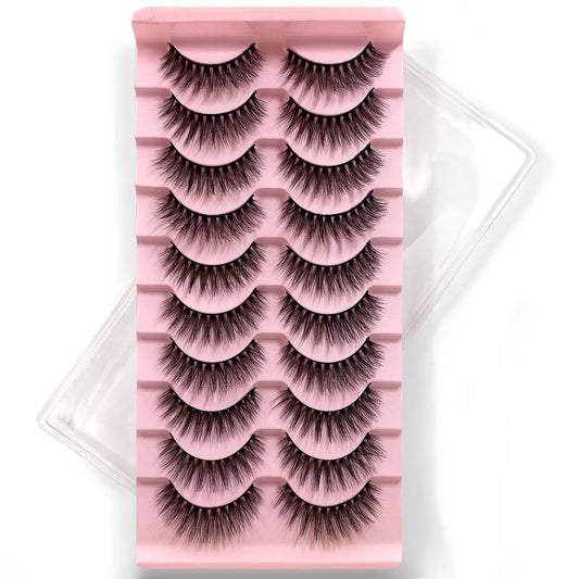 NEW 10Pairs Hybrid D Curl Short Fluffy Eyelashes 3D Mink Lashes Natural long Soft Wispy Cross False Eyelashes Makeup