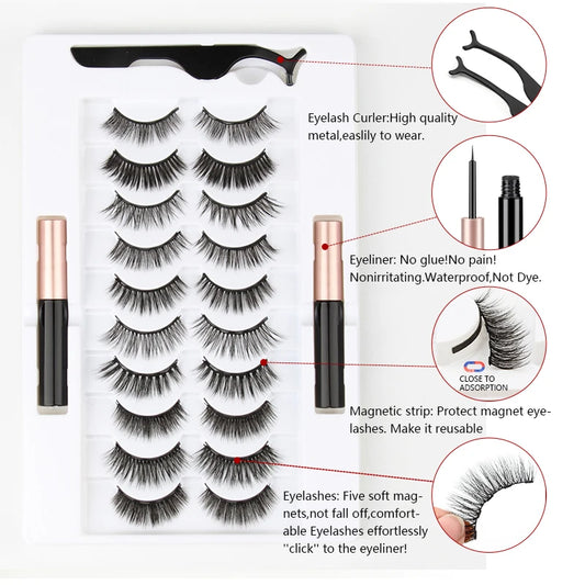 Magnetic Eyelashes Set 3/4/5/10 Pairs Natural Magnet False Eyelashes Makeup Kit Reusable Soft Mink Lashes Eyelash Extension Tool