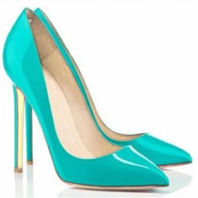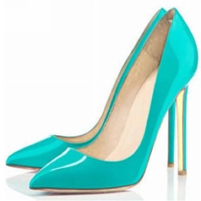 2022 Spring Newest Sky Blue Patent Leather High Heels Girls Pointed Toe Sexy Pumps Big Size 42 Thin Heels Woman Shoe