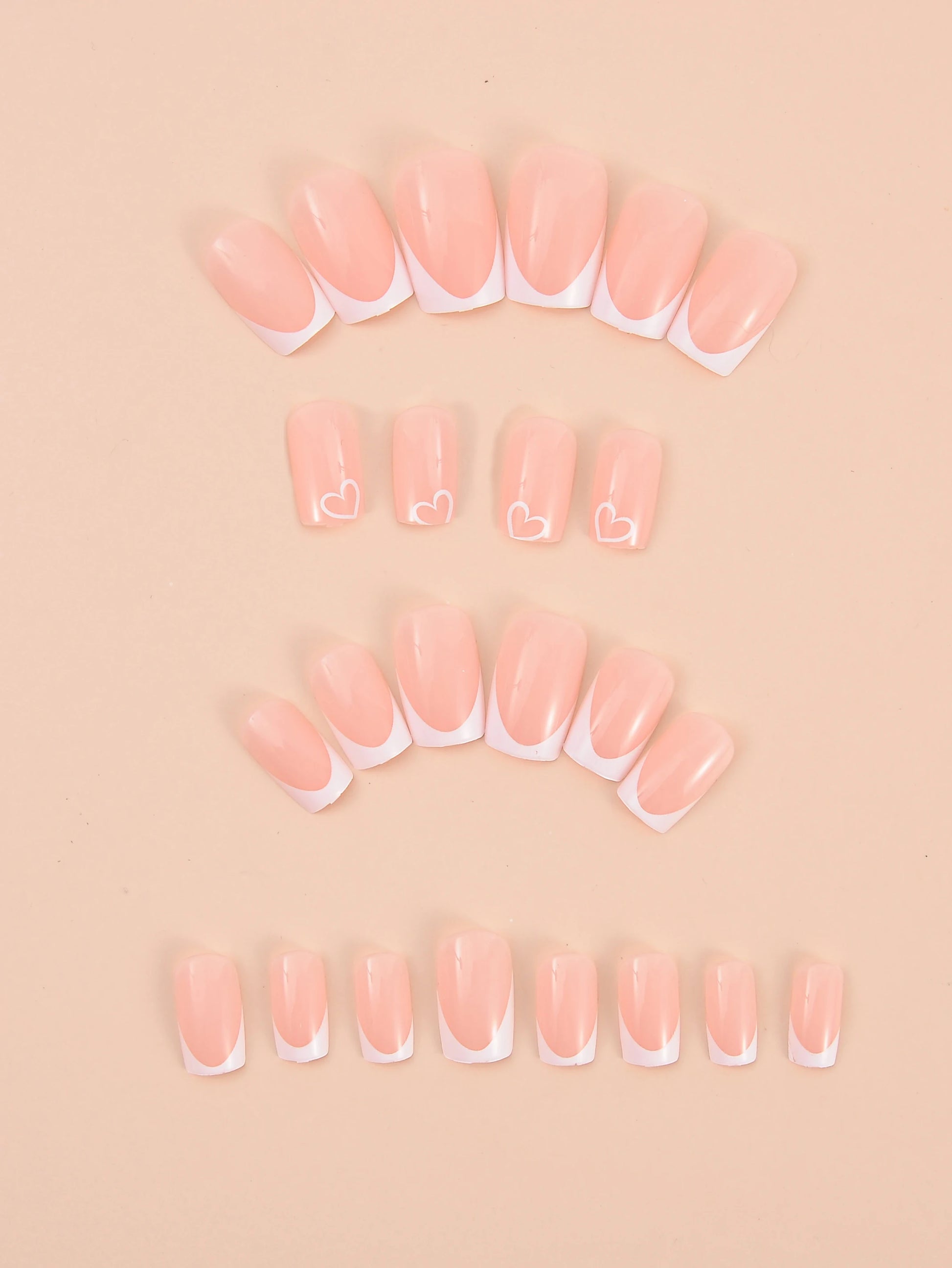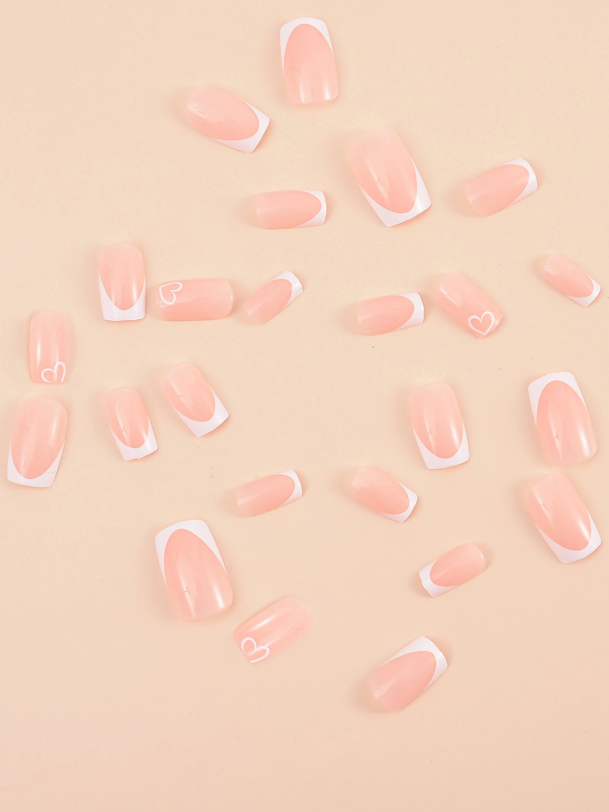 24 Pcs white Long Square French Press On Nails Love Design, Nails tool & 1pc Nail File & 1Nail Glue Sticker Kit Nails For Girl M