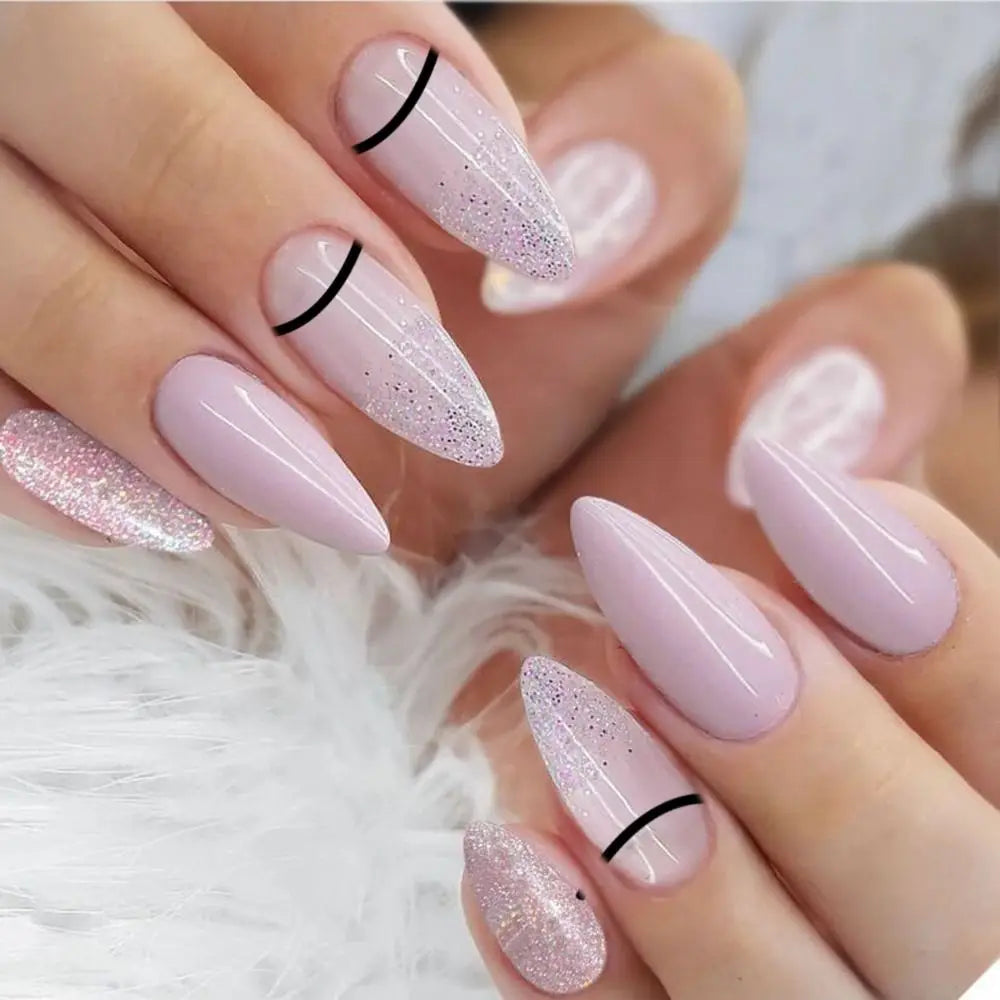 24pcs Long Almond False Nails French Manicure With Gold Edge Press on Nails Fake Nails DIY Manicure Detachable Nail Tips