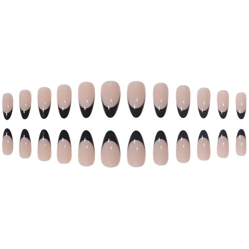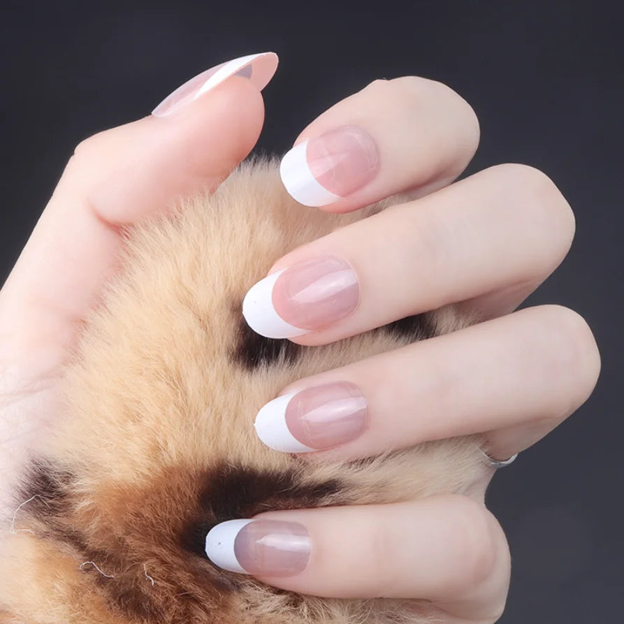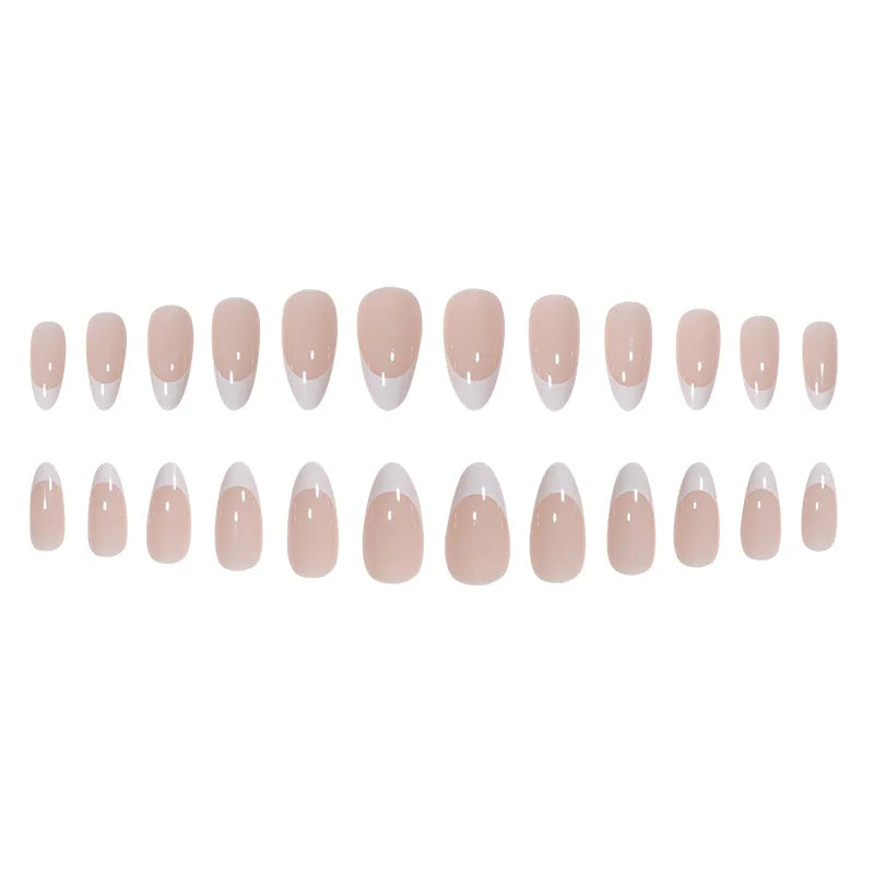 24Pcs/Strips Short Round French Press On Ballet Fake Nails Full Cover Artificial Nail Art Supplies Wearing Reusable False Nails