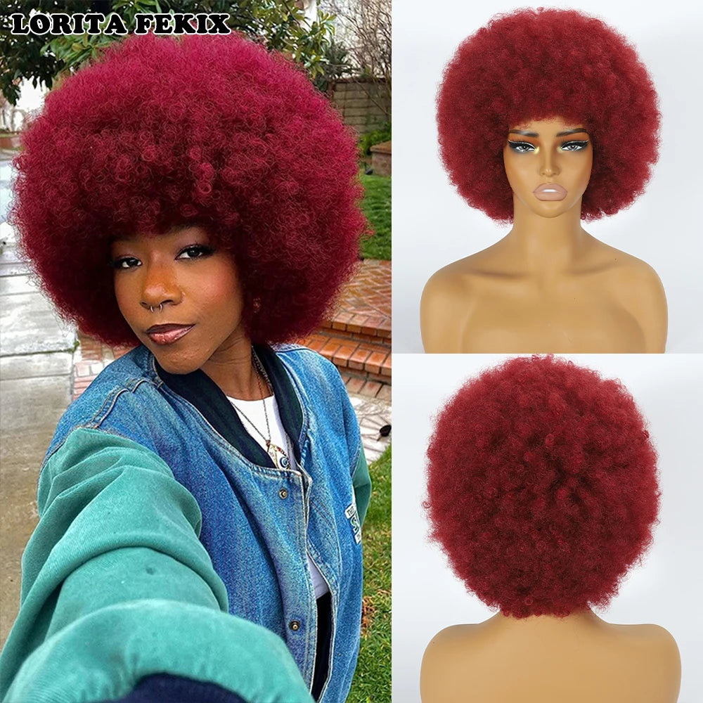 70's Afro Curly Wigs for Black Women Glueless Wear and Soft Black Afro Wigs Large Bouncy and Soft Natural Looking Full Wigs for