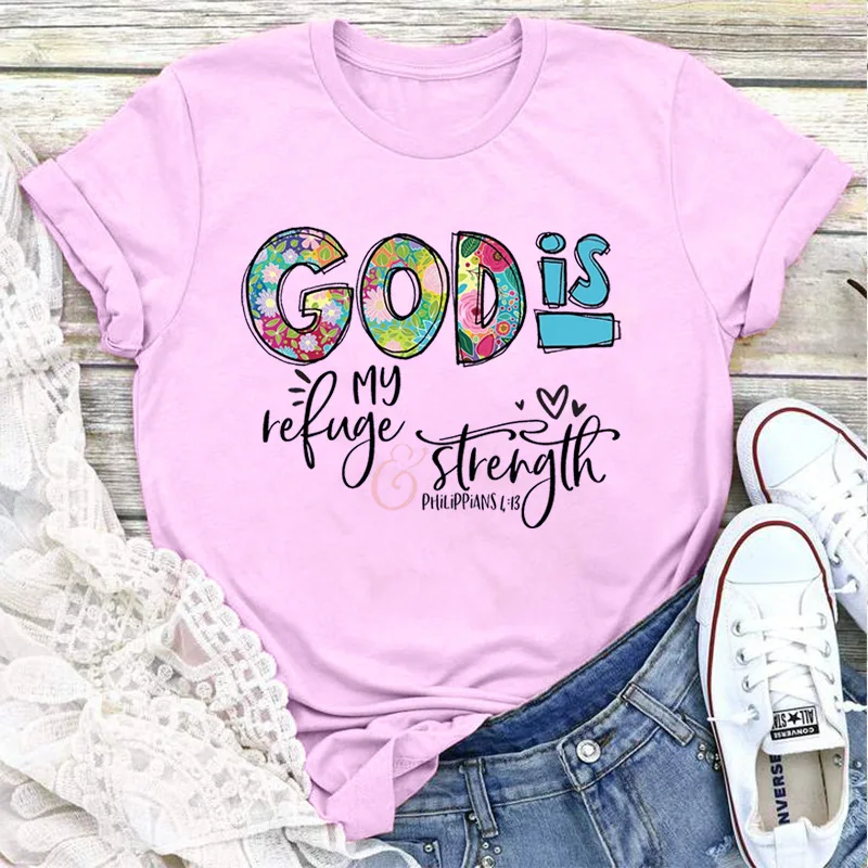 GOD IS Strength Print Women T Shirt Short Sleeve O Neck Loose Women Tshirt Ladies Tee Shirt Tops Clothes Camisetas Mujer