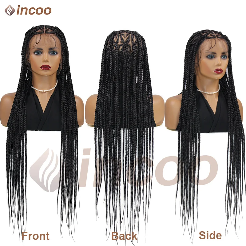 Incoo 36 Inches Synthetic Lace Braided Wigs Cornrow Braids Lace Wigs For Black Women Heart Box Braids Lace Wig On Sale Clearance