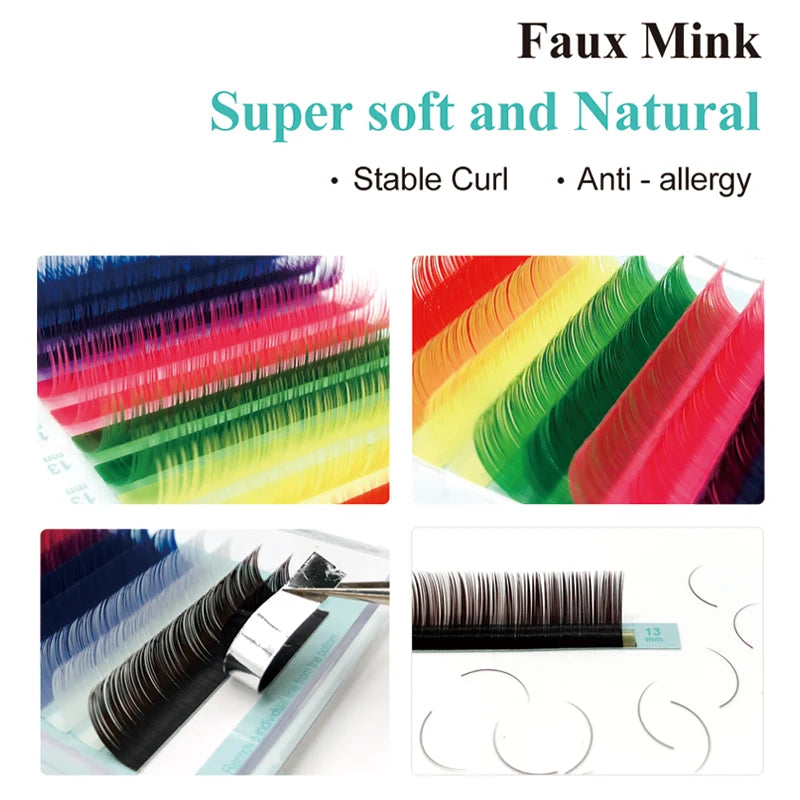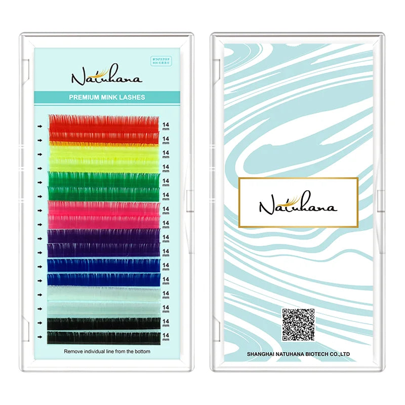 NATUHANA Lashes 16rows Mix Rainbow Color False Mink Eyelash Extension Faux Individual Eyelashes Makeup Cilia maquiagem cilios