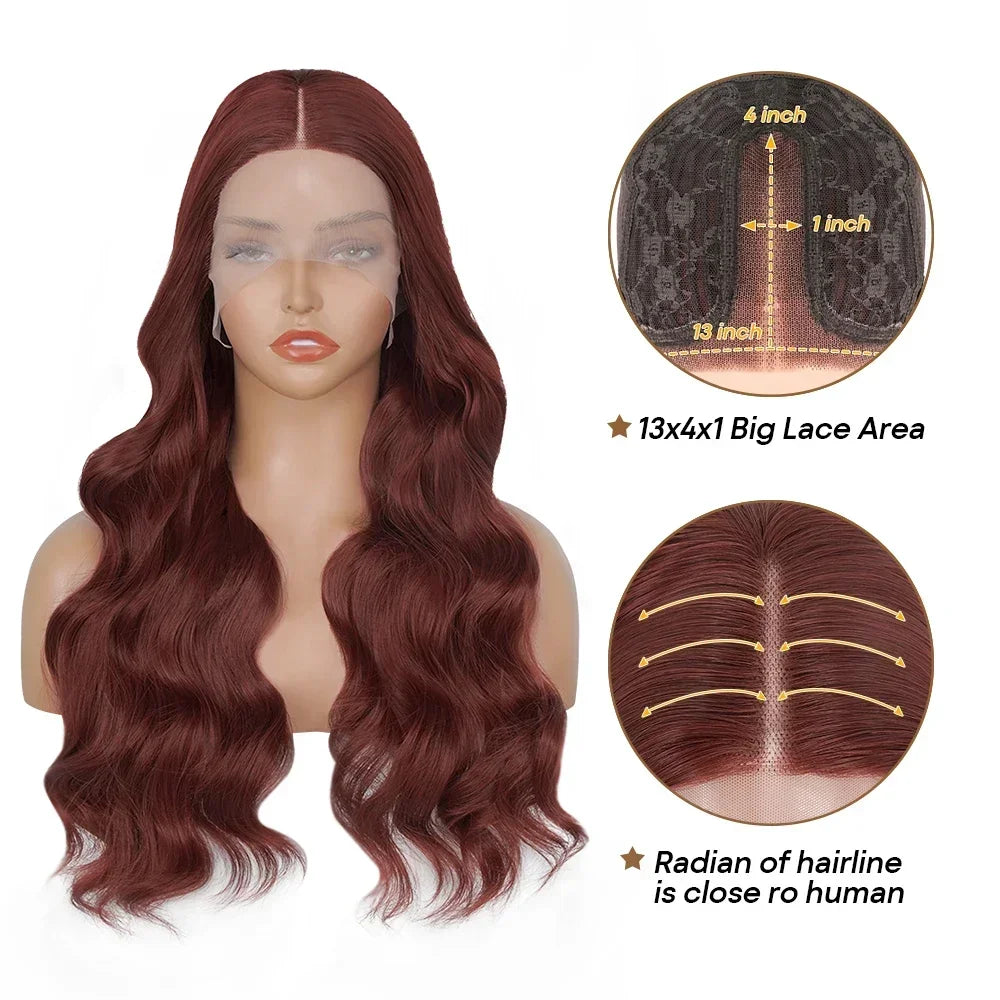 Reddish Brown Lace Front Wigs Synthetic Chocolate Brown Body Wave Wig Omber Red Lace Frontal Wig Pre Plucked With Baby Hair