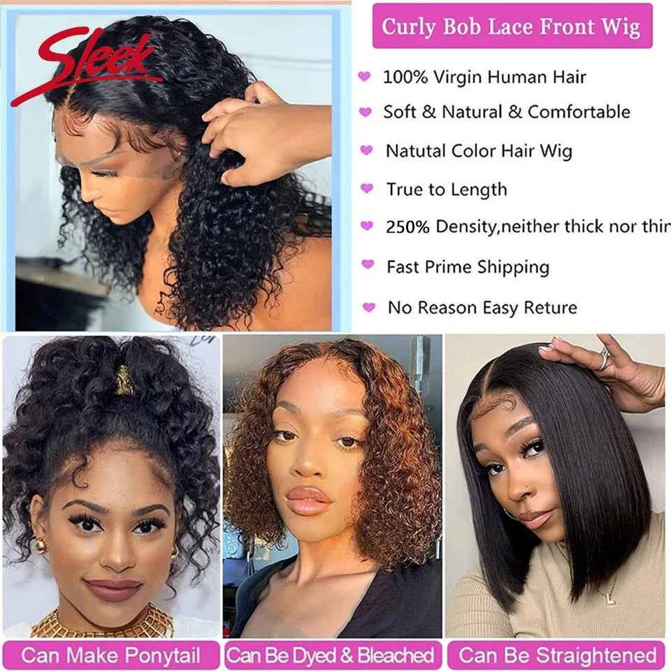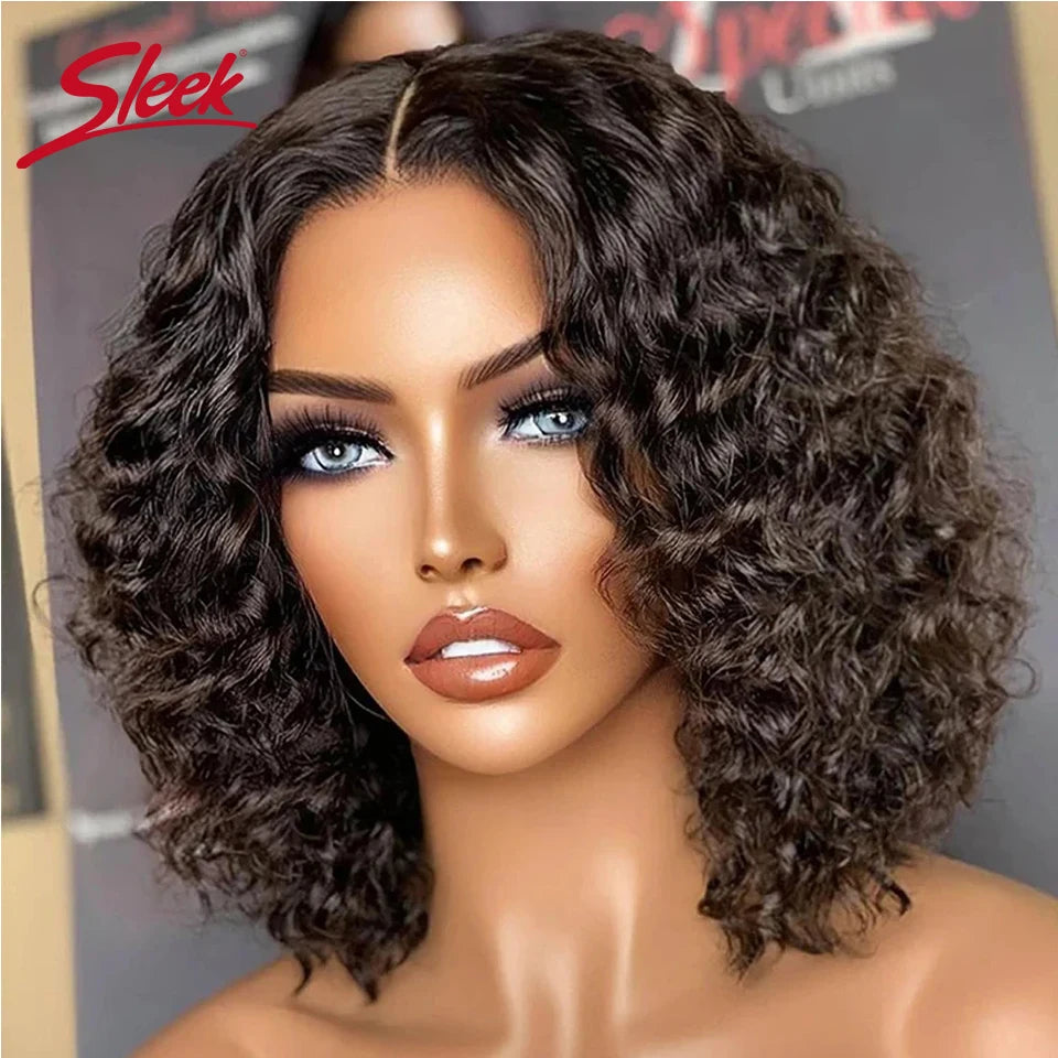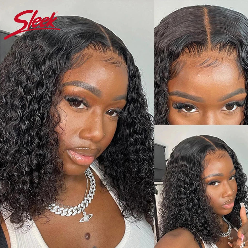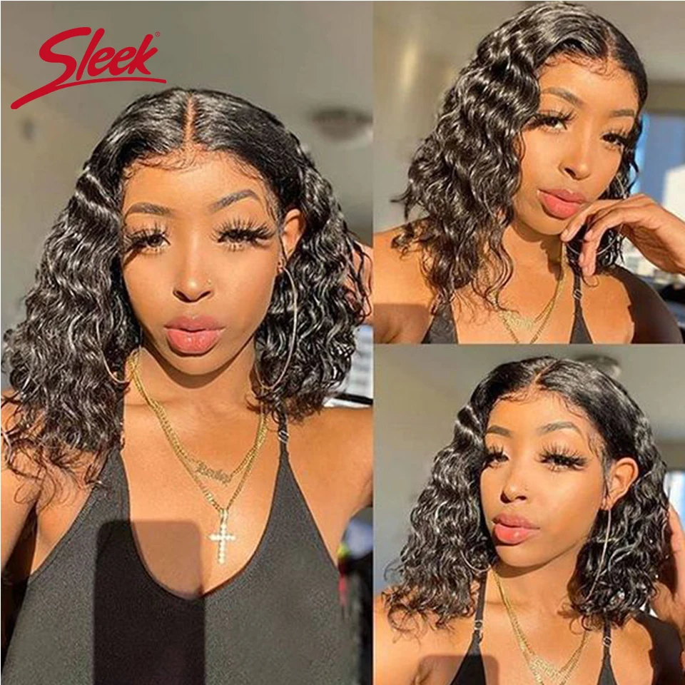 Sleek Brazilian Water Remy Deep Curly Hair Bob Wigs Natural Black Color T Lace Front Part Bob Wigs 200% Density Ombre T1B/27 Wig
