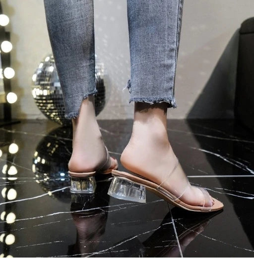 Summer Women Pumps Sandals 9cm Jelly Slippers Sexy Open Square Toe High Heels Women Transparent Slippers Shoe Heel Clear Sandals