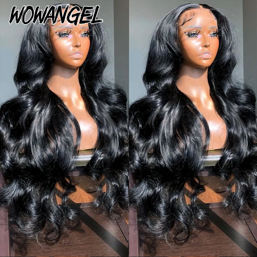 Wow Angel 250% Jet Black 13x6 HD Lace Front Human Hair Wigs Pre-Plucked Body Wave Brazilian Transparent Lace Skin like For Woman